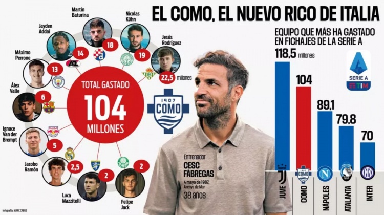 若论黑马,升班马科莫当仁不让。他们今夏投入巨大,展现出强烈野心,签下米兰旧将莫拉塔、曼城的佩罗内、克罗地亚新星巴里图纳等潜力球员,此外[[HTML_05588a7a841e0040a