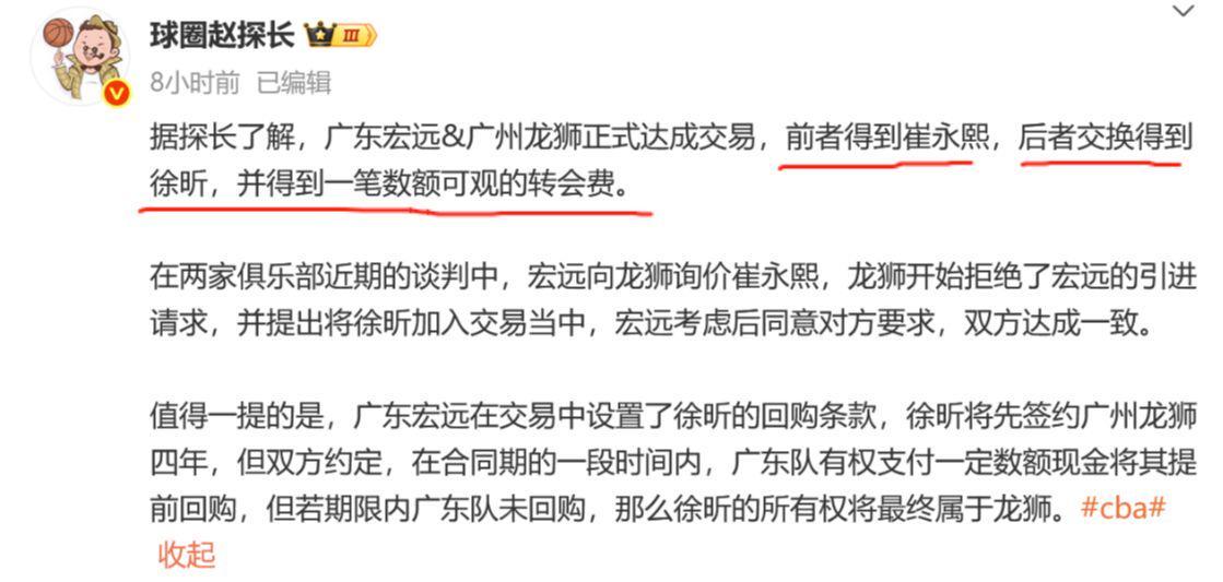让我们静待崔永熙与徐昕交易的官宣,同时祝诸位更换东家的球员能在新球队表现出彩!